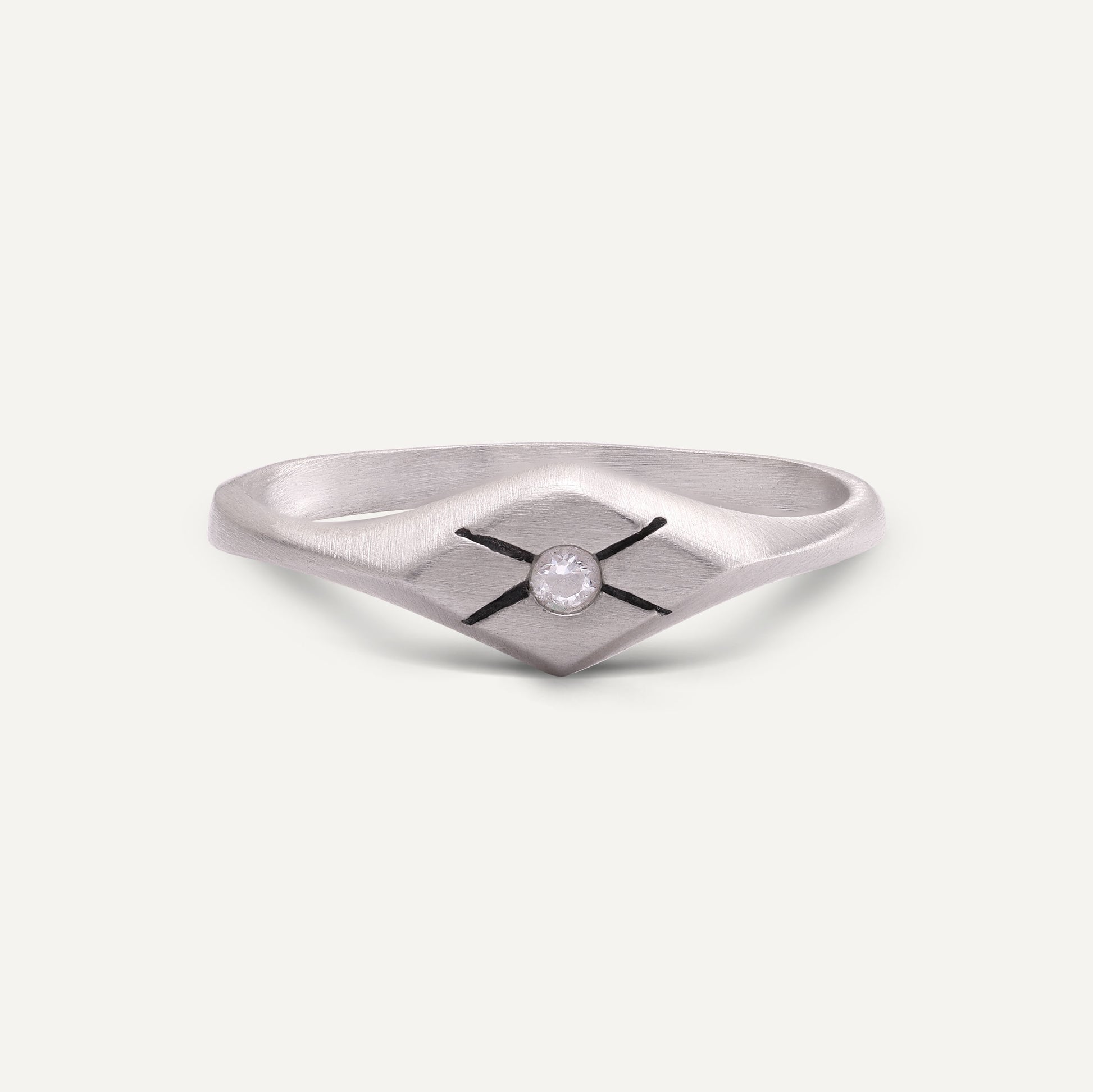 This ring is hand-molded and cast in sterling silver. The ring measures 1/4" / 6 mm across. Choose between a 2 mm cubic zirconia or a lab-grown diamond.
