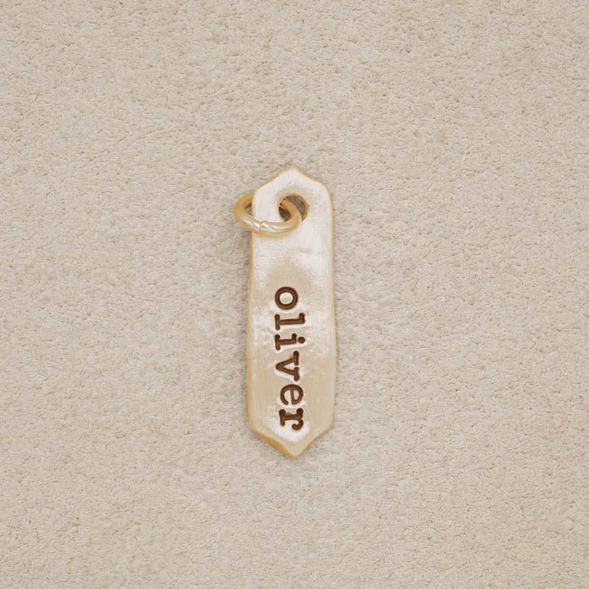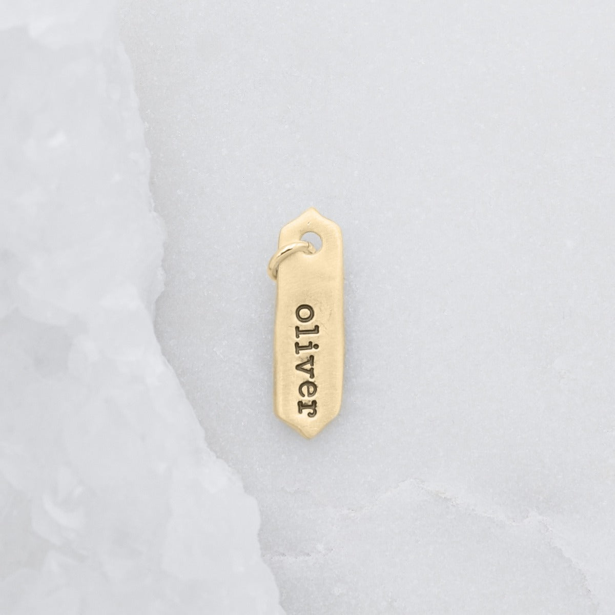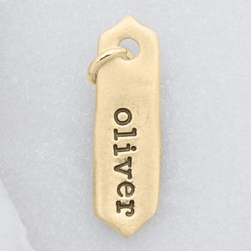 The arrow tag charm is hand-molded, cast in 14k yellow gold and measures approximately 3/4"/1.9 cm in length. As an intentional design decision, we stamp in lowercase letters only.