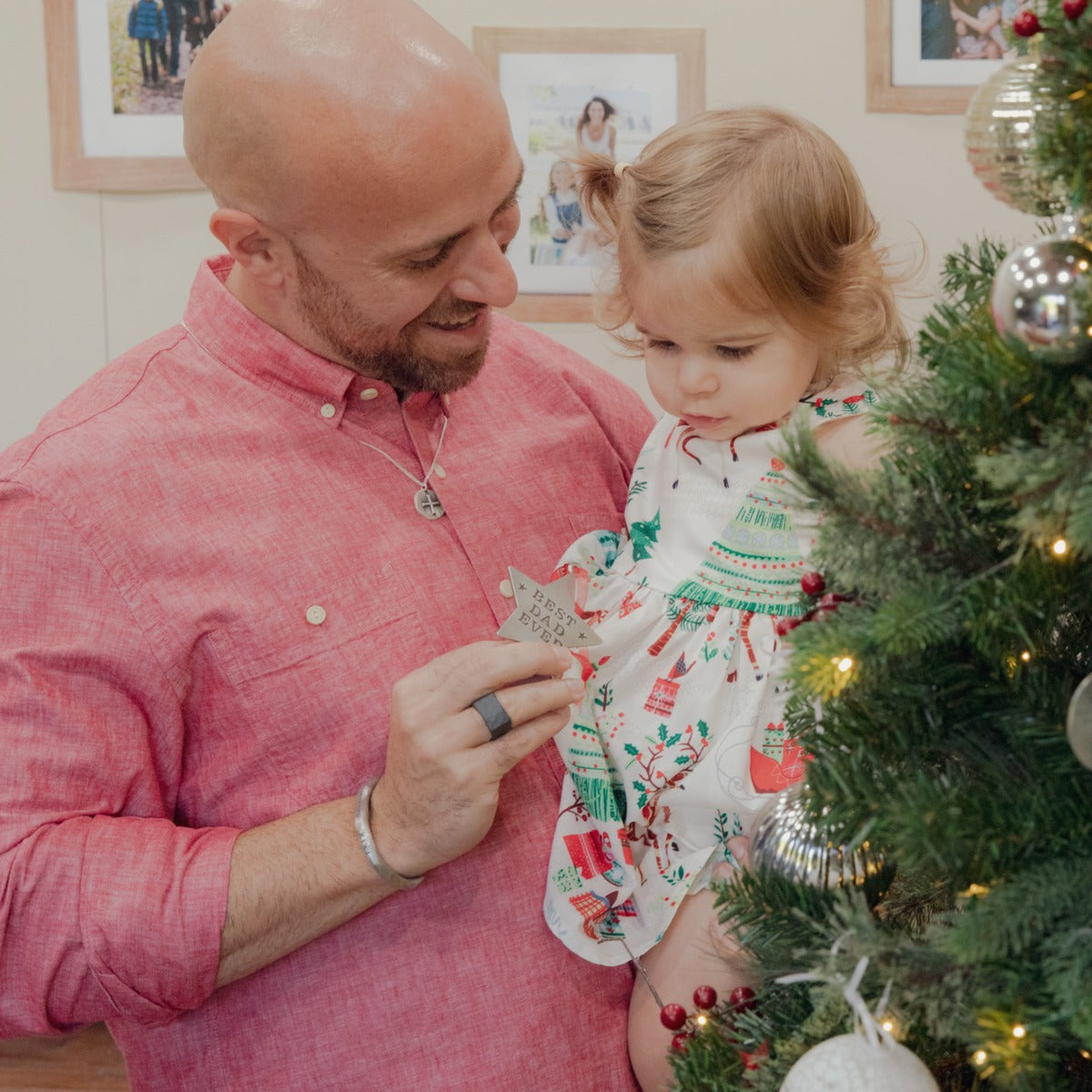 For the father who goes to great lengths to guide and provide for his family. Since day one, Dad has protected, prayed over, and held his kids close. He is there no matter what. With this personalized Christmas ornament, it is the perfect gift idea to remind him every year that he's the best dad. Personalize this up to 4 lines on the back with something thoughtful and meaningful to him.