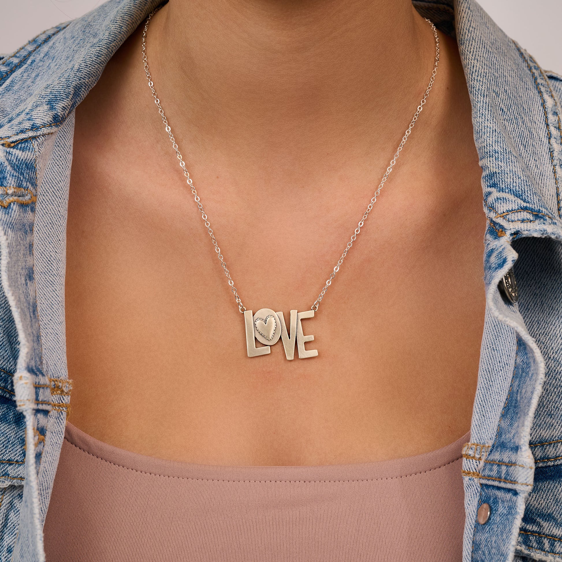 Block Letter Love Necklace (Sterling Silver)