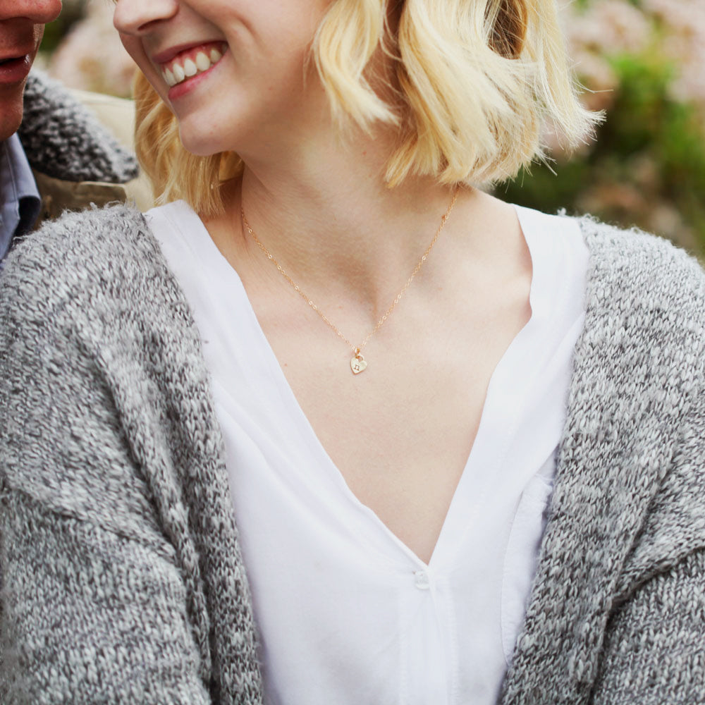 The heart is the truest part of who we are. It is both fragile and resilient. When your heart and my heart came together a beautiful and unique love was born. I cherish this love with all I am. Create your own one-of-a-kind necklace with a cherished heart hand stamped for you and your love, or to represent each of your loves. Starting price includes two charms and each additional charm is $69.99. It's absolutely darling and full of meaning!