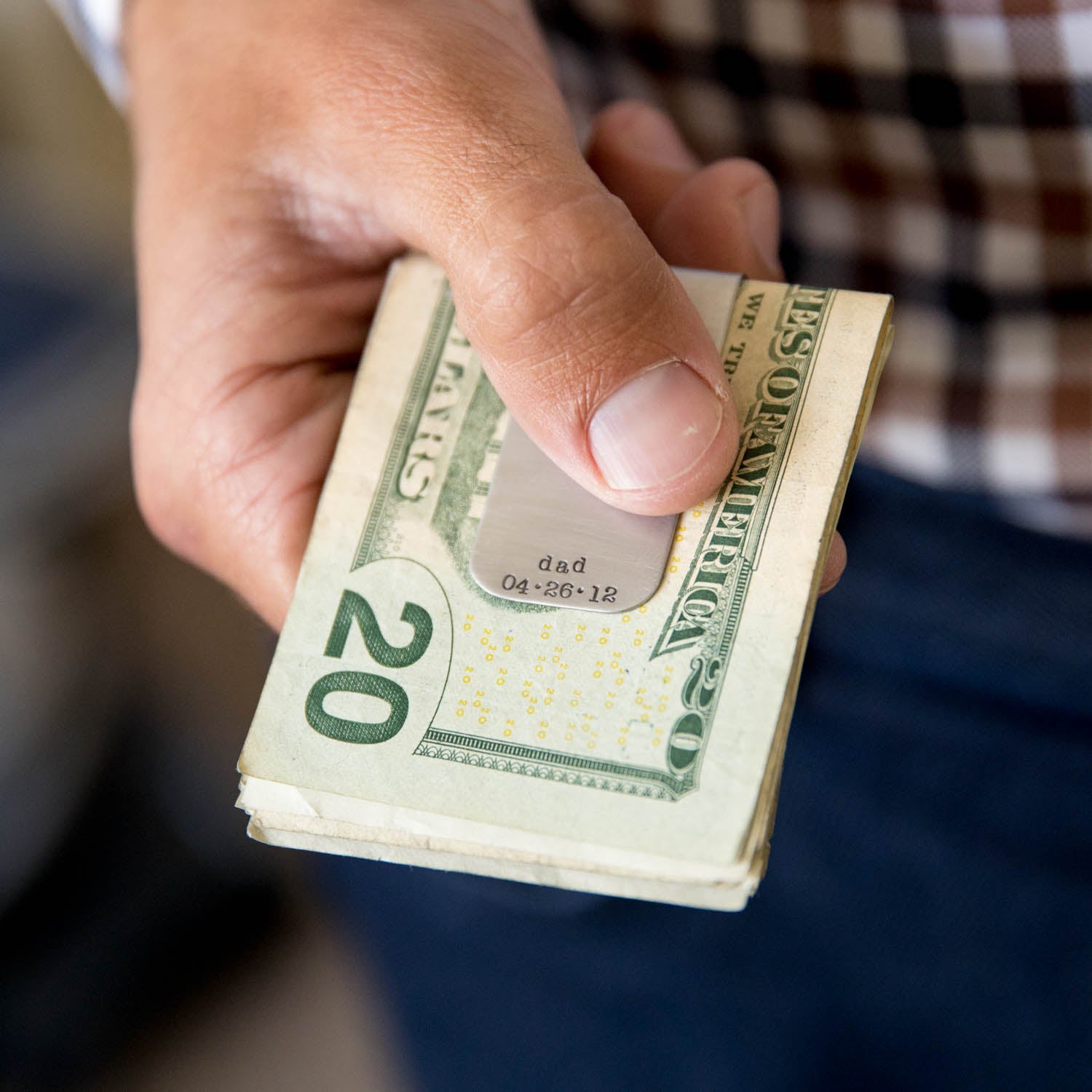 Your heart is big, your silliness is infectious, your leadership is respected, your courage is heroic! Customize this stainless steel money clip with a special name, phrase or date! Dad will love it! Your custom piece will be made just for you, exactly as you type it into the field. For dots between names, please use a period.