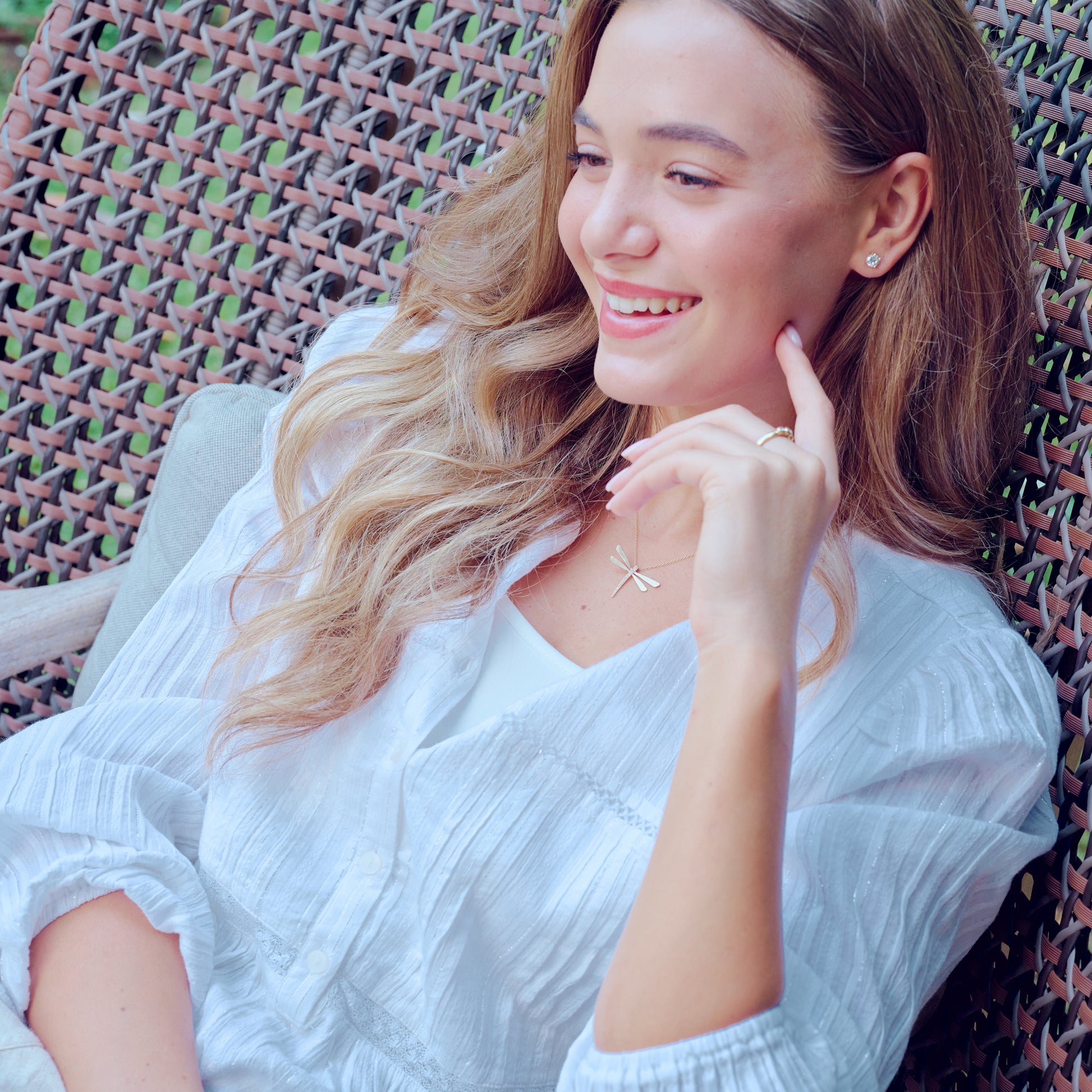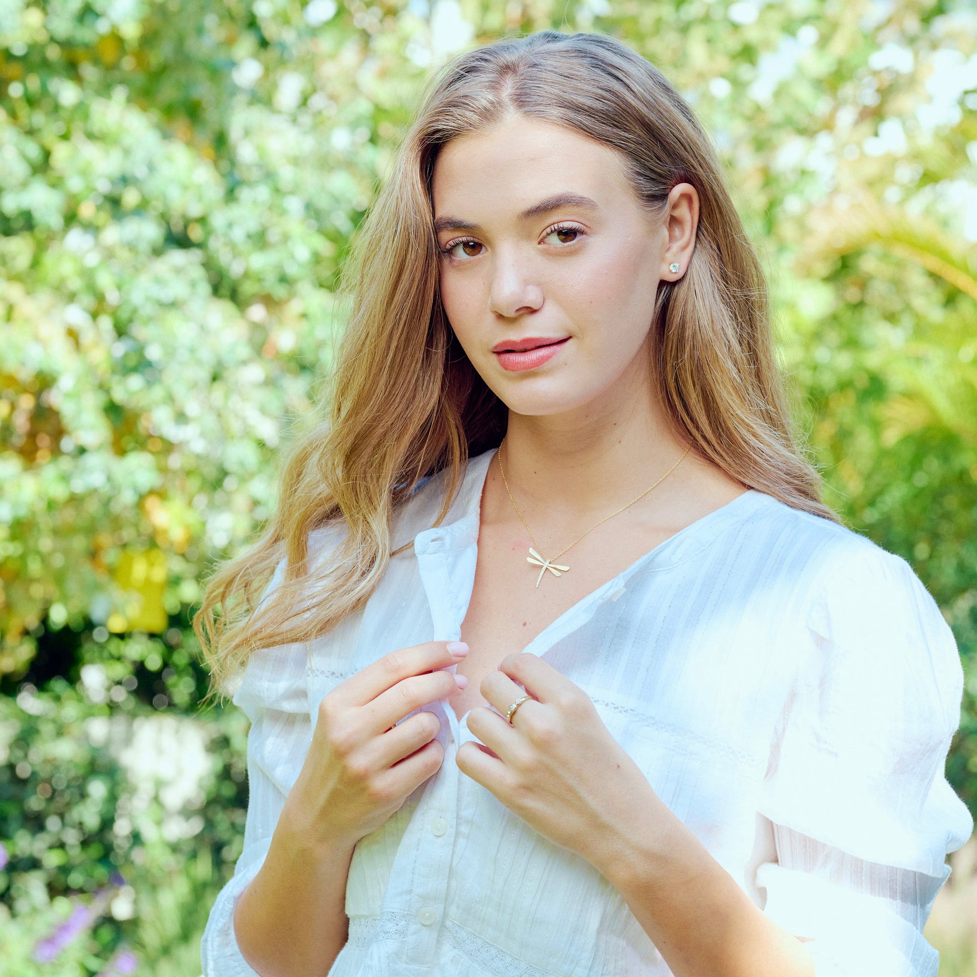 Dragonfly Diamond Necklace - Large (14K Solid Gold)