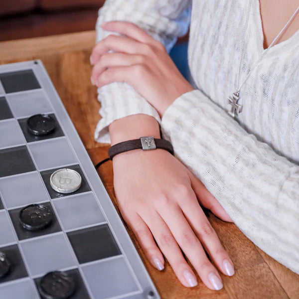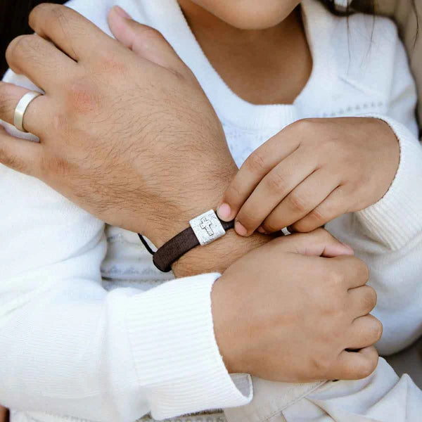 The straightforward, unbiased shape of this bracelet is designed to remind us we are all created and loved equally by God. The square cross bead on this leather bracelet keeps us grounded and is a reminder that every person we encounter is more like us than different and equally loved.