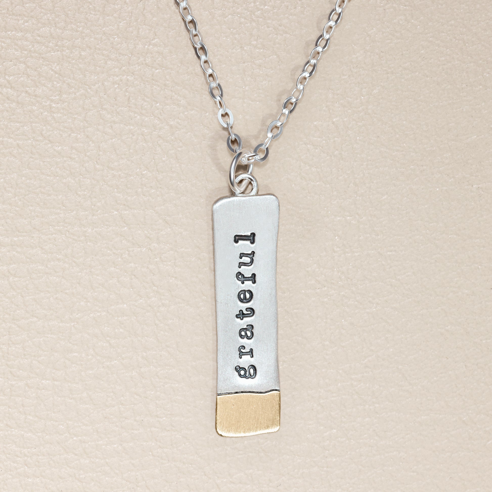 Silver dipped in gold, creates the perfect contrast of warm and cool. The gold-dipped bar necklace measures 1" tall and 1/4" wide, and hangs from a sterling silver link chain.