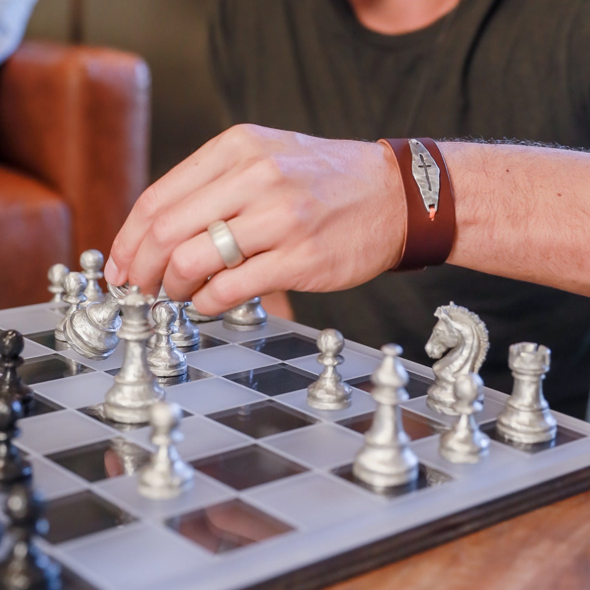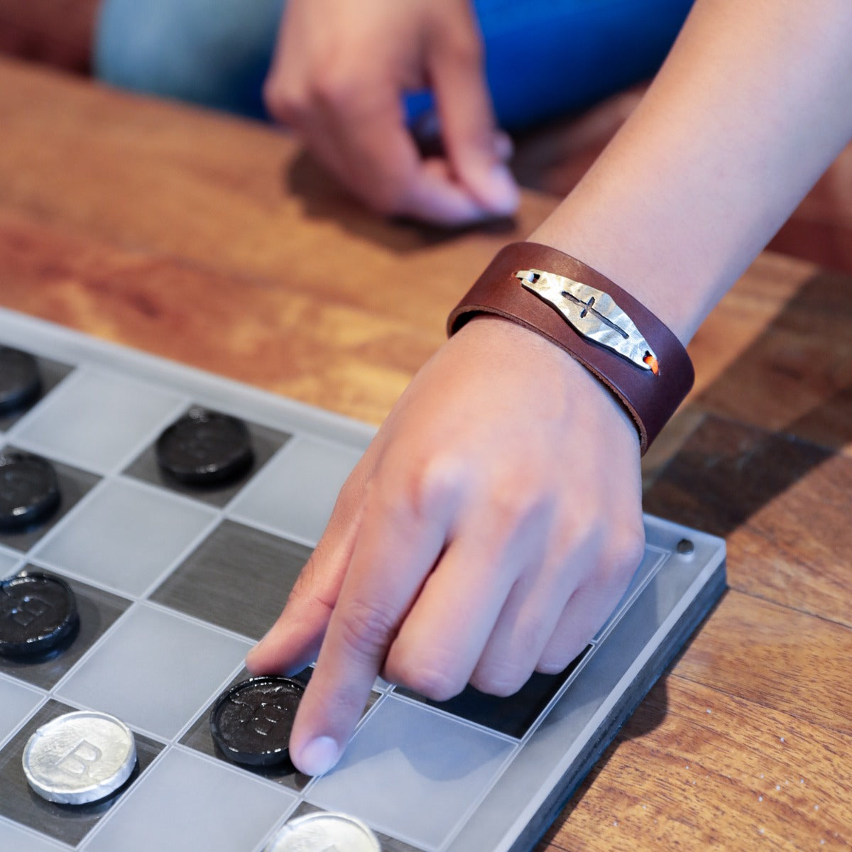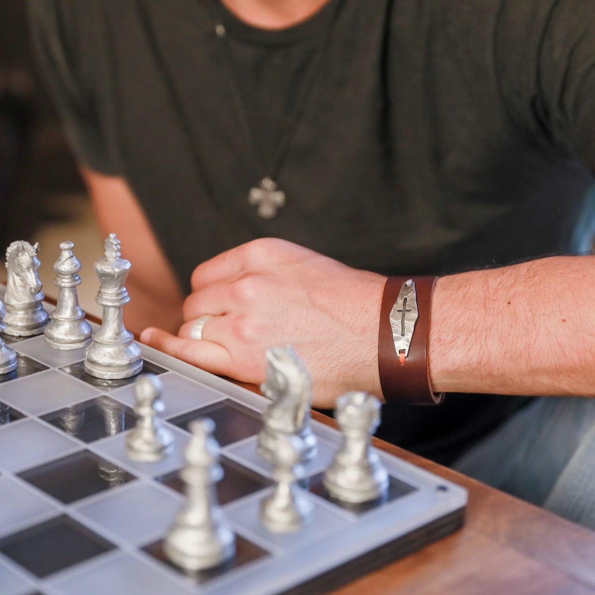 Knowing and being known is a struggle of modern existence. The Identity Cross Cuff reminds each of us we are intimately known and called to be true to God's design for our lives no matter what we're facing. Cuff made of brown water buffalo leather with pewter ID tag.