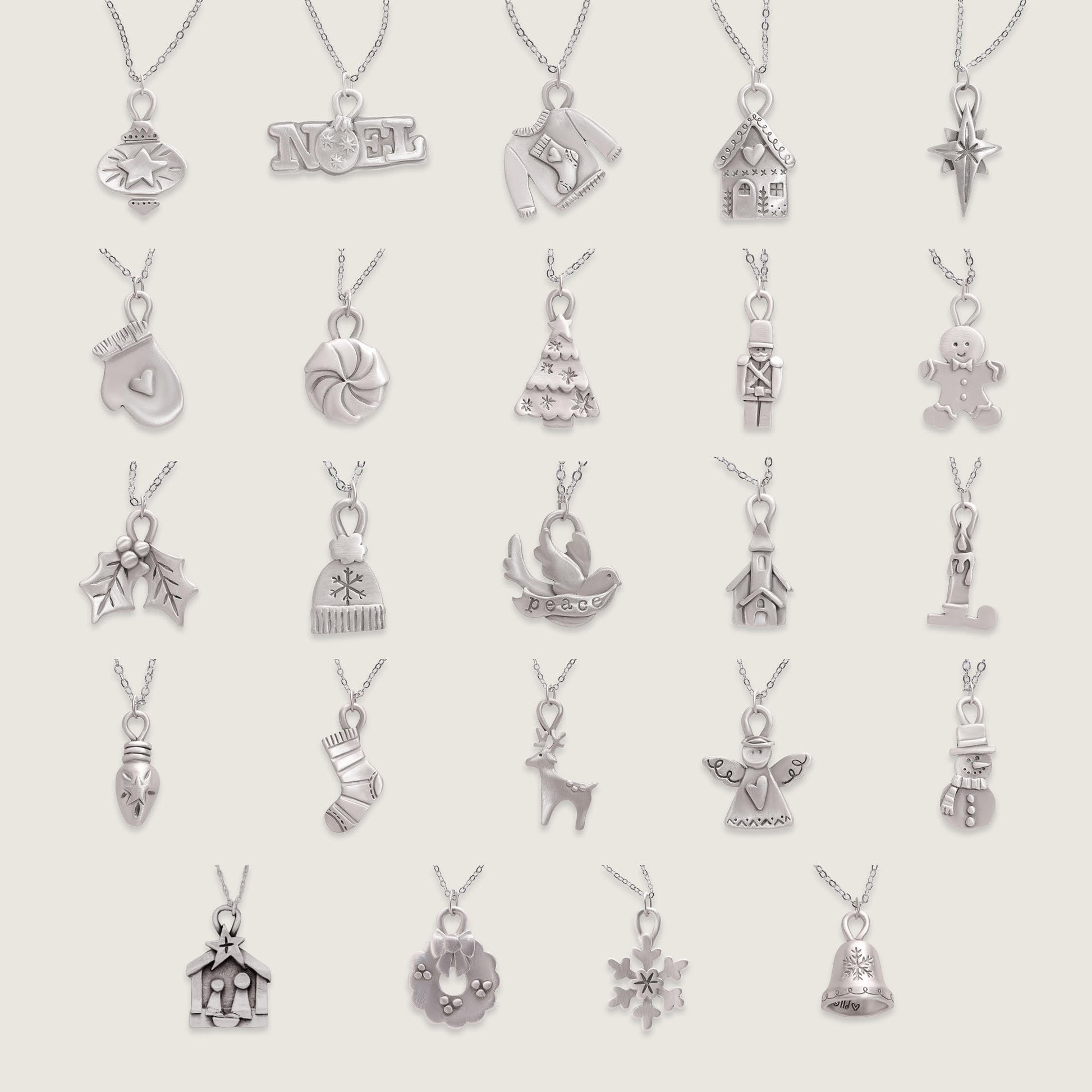It measures approximately 1 1/4" / 3.2cm and hangs from an 18" / 45.7cm stainless steel chain.