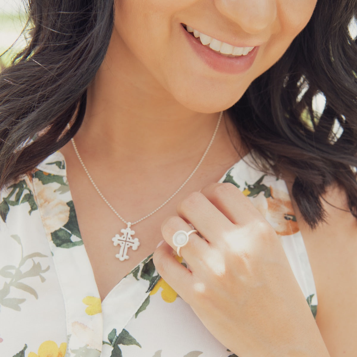 To find your perfect fit, measure the inside diameter of a ring that fits comfortably on your finger. Then, use the chart below to find your size.