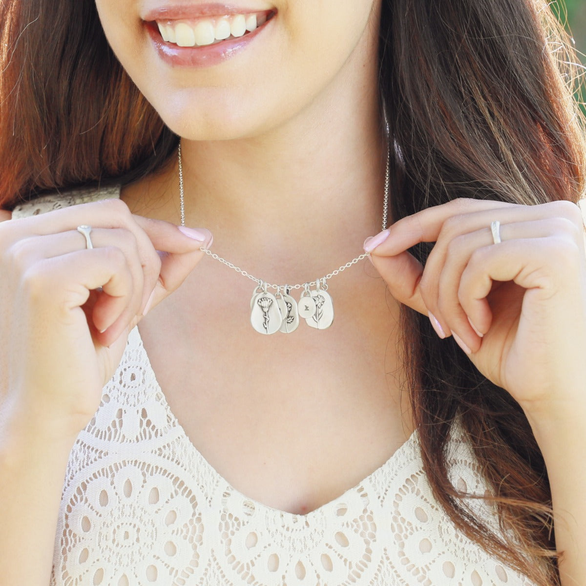 Personalized Birthstone Bloom Jumble Necklace (Sterling Silver)