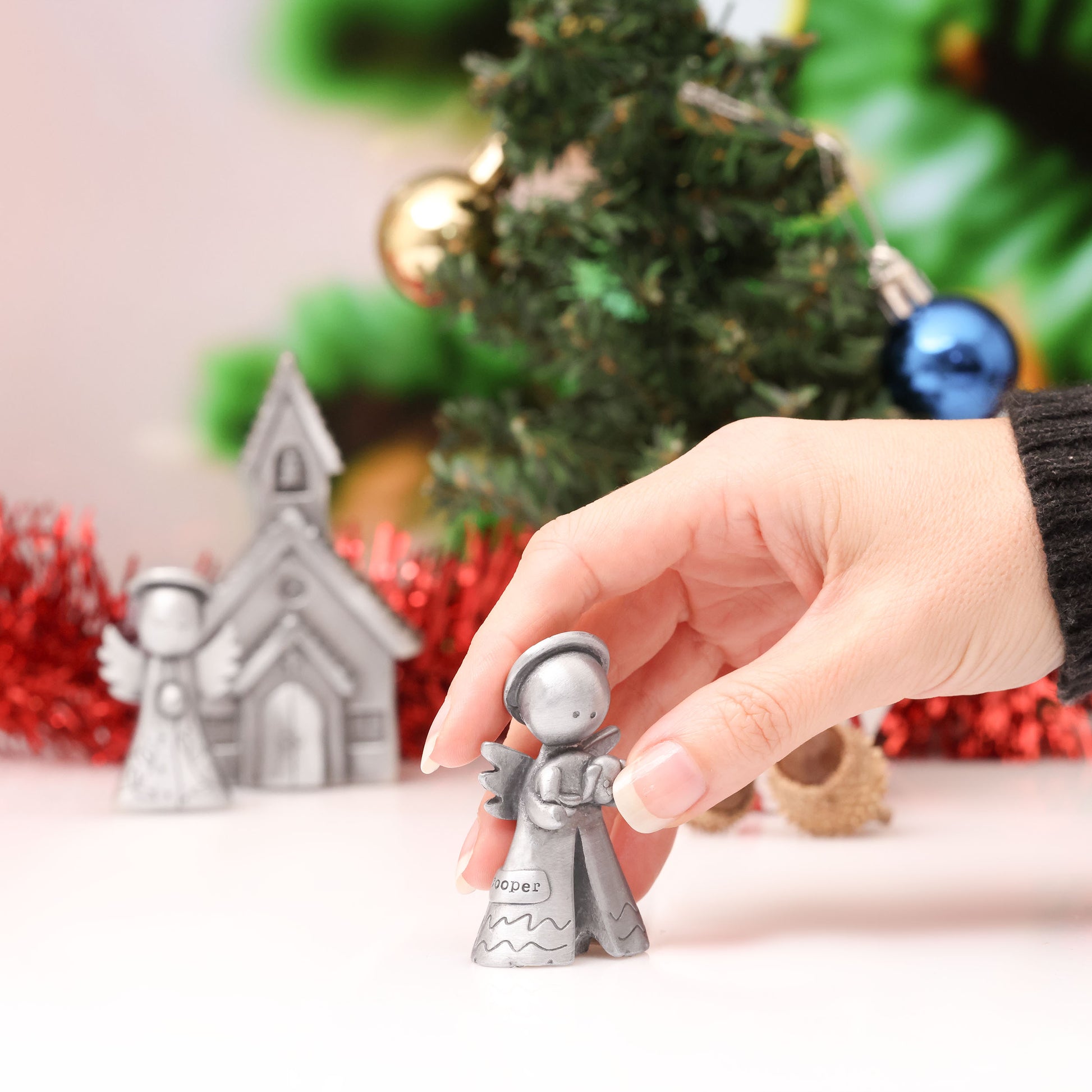 This little angel has a big announcement. Joy has come! Personalize the banner on this hand-carved angel and create a one-of-a-kind keepsake. Precious and full of meaning!