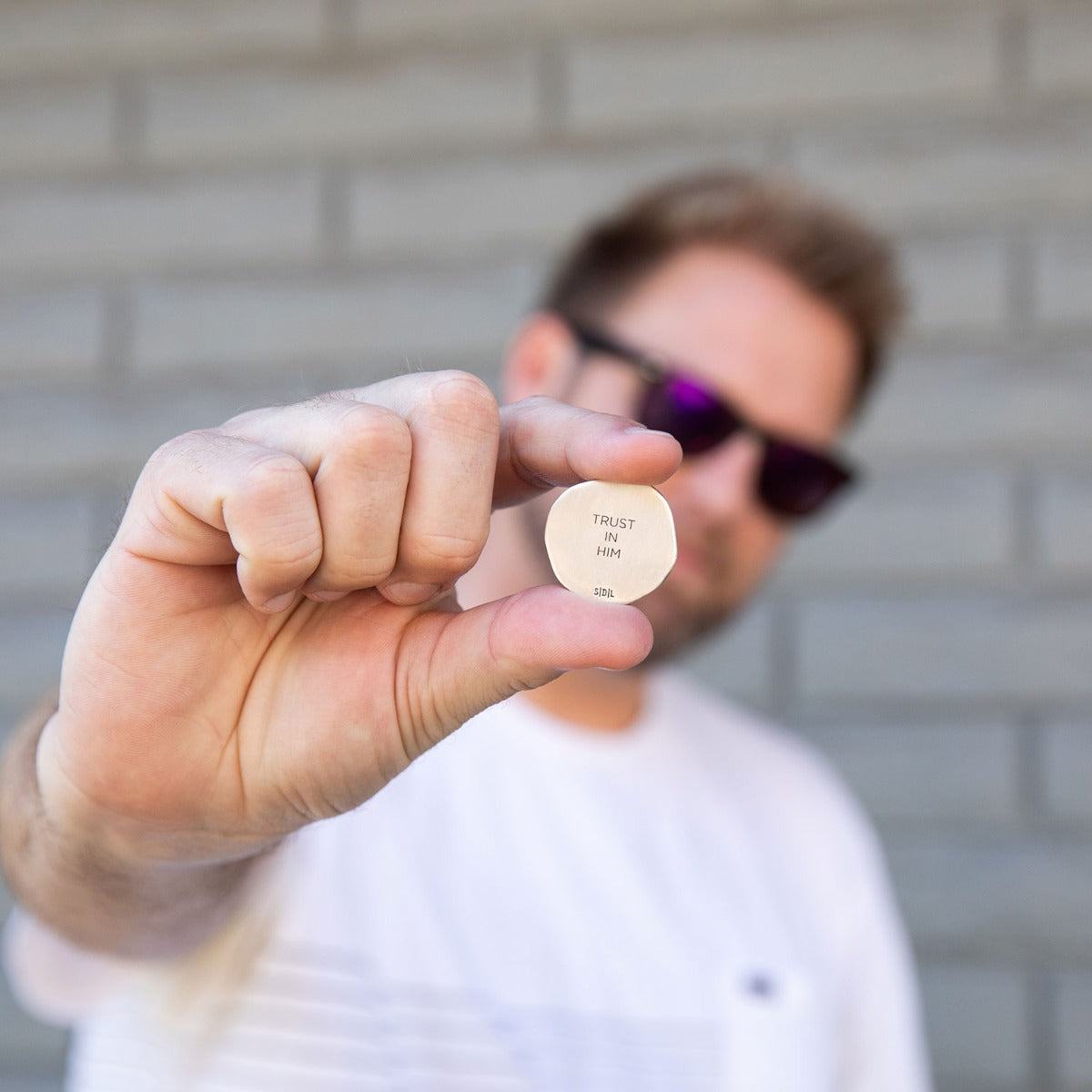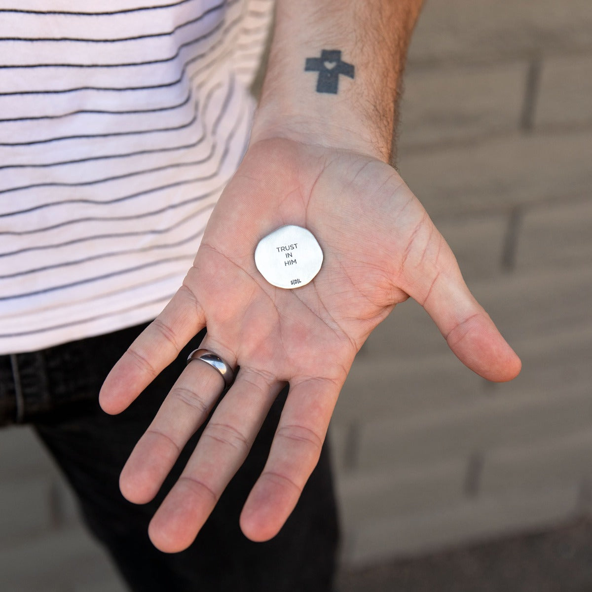 In the gospels Jesus used a Roman coin with Caesar’s image to remind us we are made in God’s image and to teach us we are to “give back to Caesar what is Caesar’s, and to God what is God’s.” This pocket coin is handcrafted in sterling silver and it measures approximately 1 1/4" tall by 1 1/4" wide.