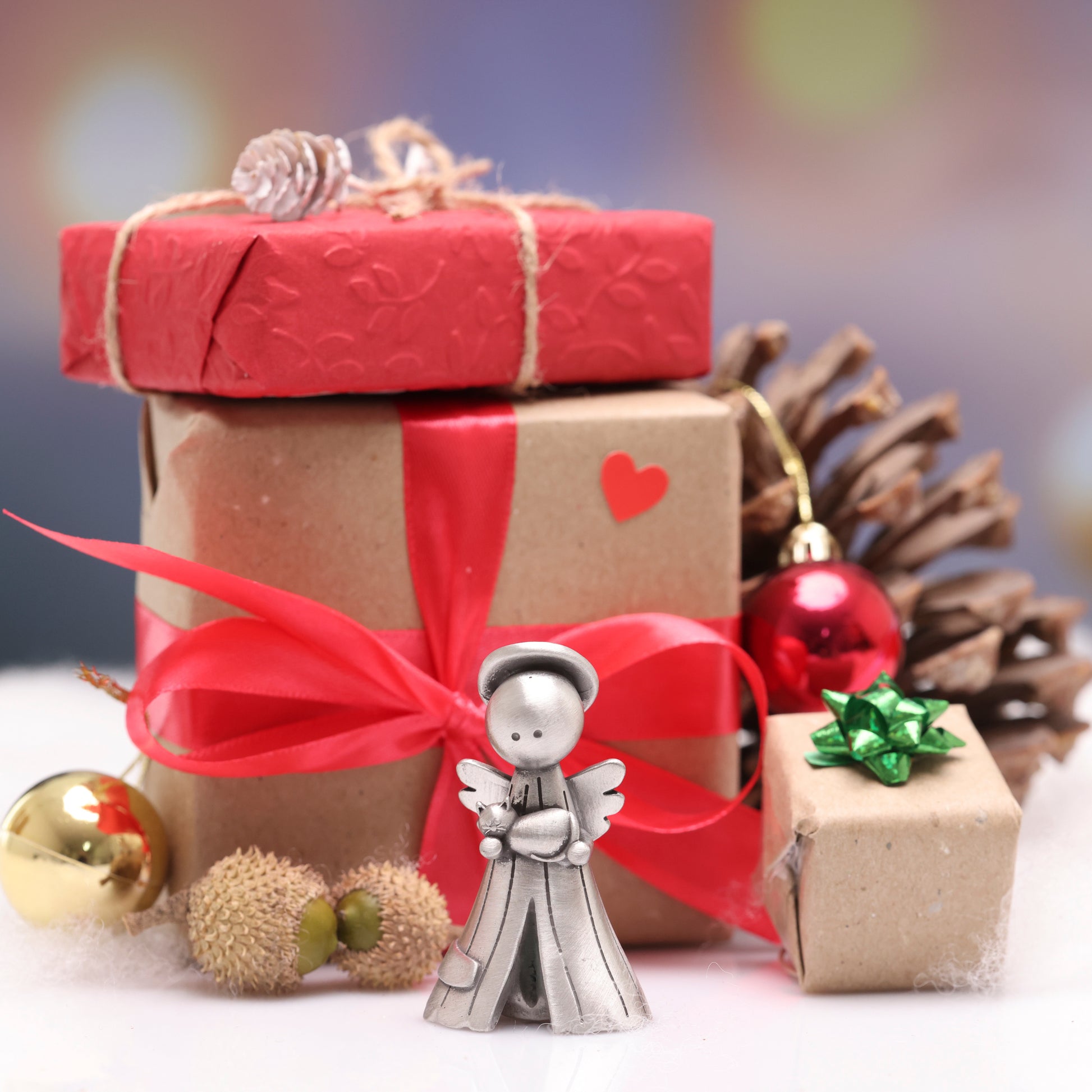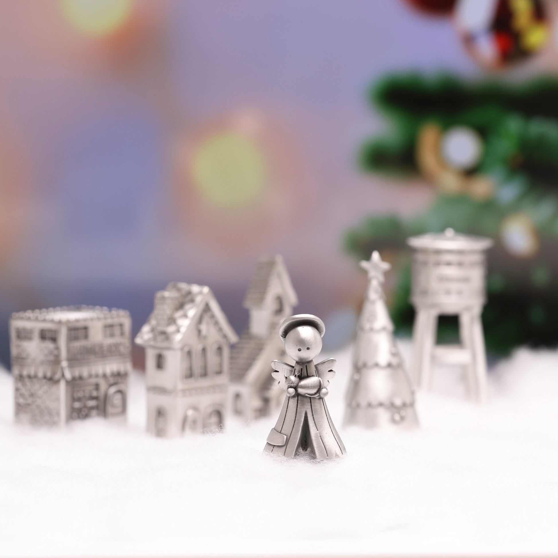 The Angel is hand-molded and cast in fine pewter, and measures 2.5" / 6.4 cm tall x 1-1/4" / 3.2 cm.