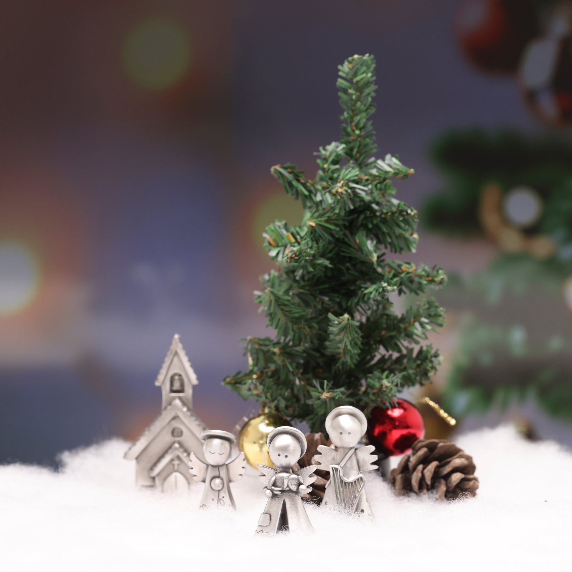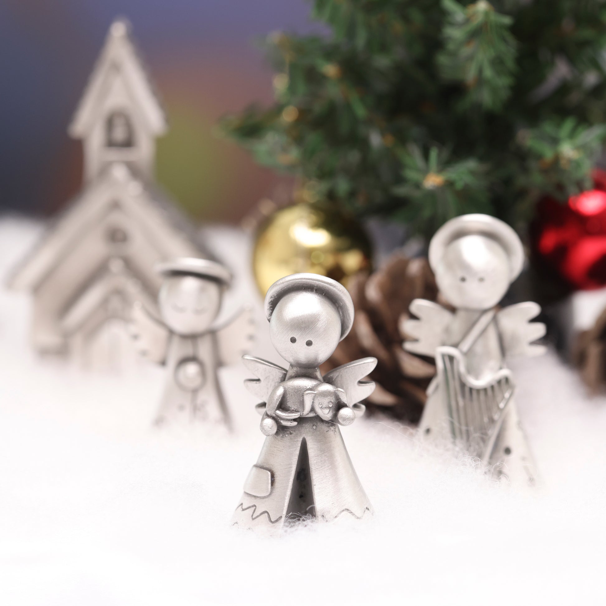 The Angel is hand-molded and cast in fine pewter, and measures 2.5" / 6.4 cm tall x 1-1/4" / 3.2 cm.