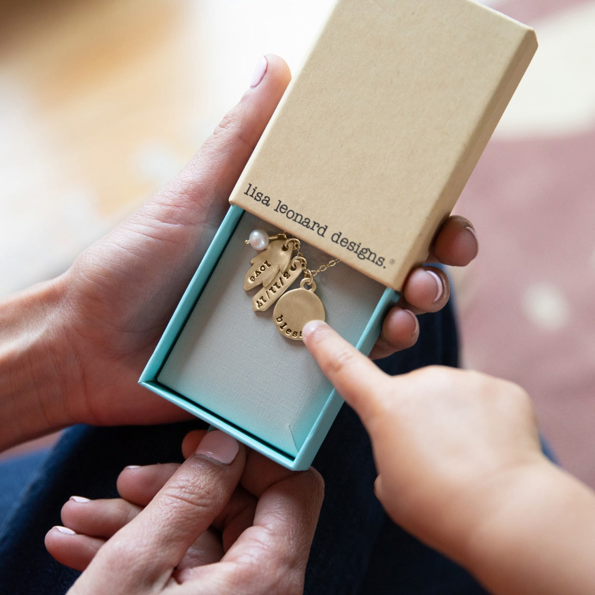 The main characters in my story are the people I hold most dear—the ones who have helped shape me and make me who I am. Each handcrafted charm is made just for you, creating a one-of-a-kind necklace that tells YOUR STORY. Each charm measures approximately 3/4" / 2 cm. Starting price includes one 14k yellow gold charm, a gold-filled link chain, and a freshwater pearl. As an intentional design decision, we stamp in lowercase letters only. To specify a heart, please enter <3