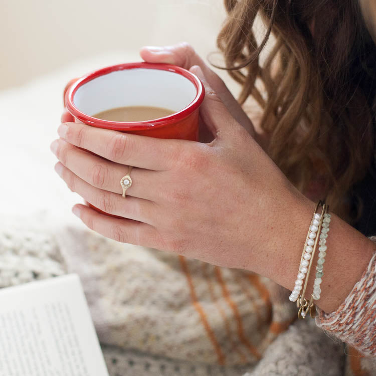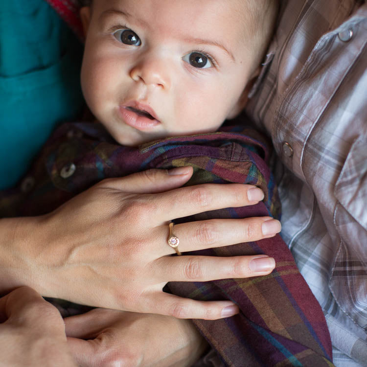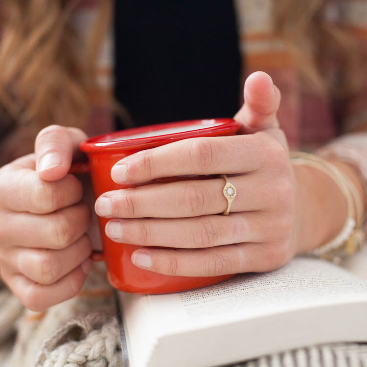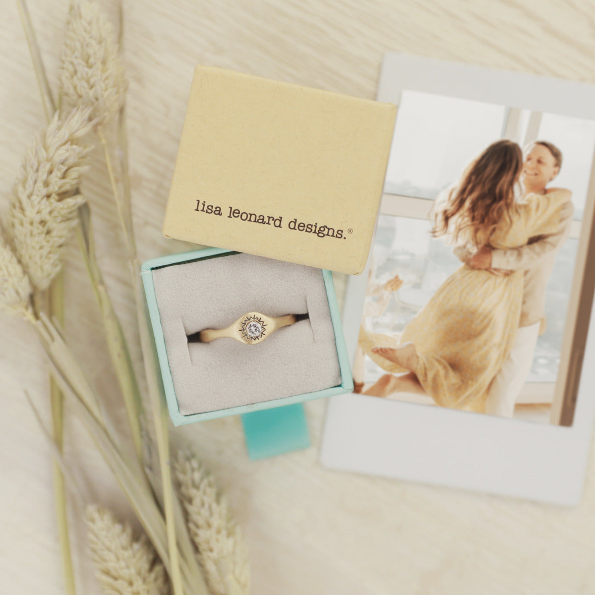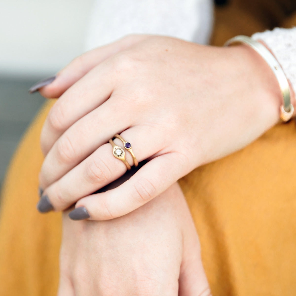 Do you know that feeling; when you're walking through a dark time and you're wondering if hope or joy are even possible? Your heart is grieving. And then you feel it--just a hint of light. The smallest ray of hope. And you hold onto it as tightly as you can. The sunburst ring captures that glimmer of hope. Stack a few together or mix with other stacking rings. Absolutely breathtaking.