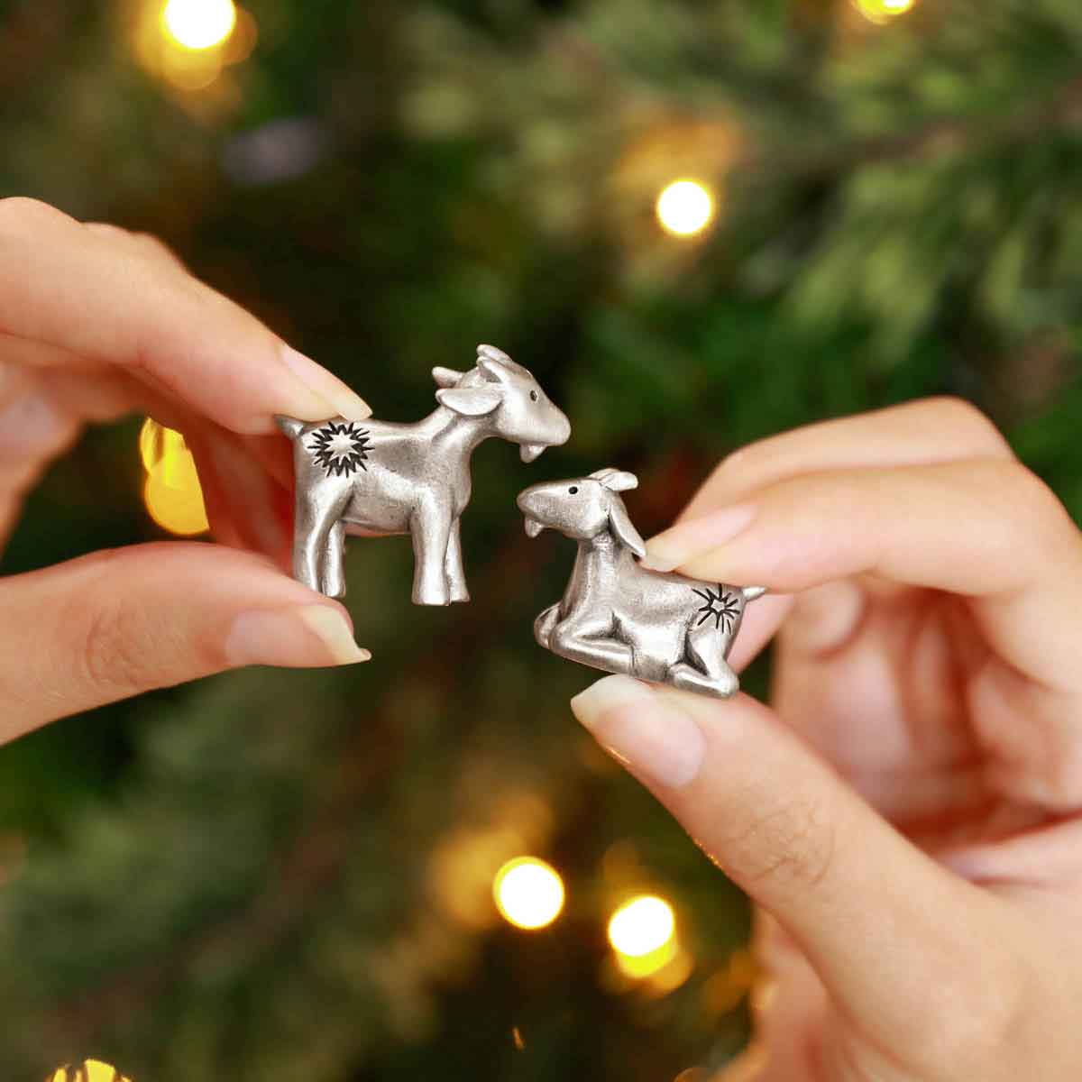 A Pair of Miniature Goats Nativity Figurine Set (Pewter)