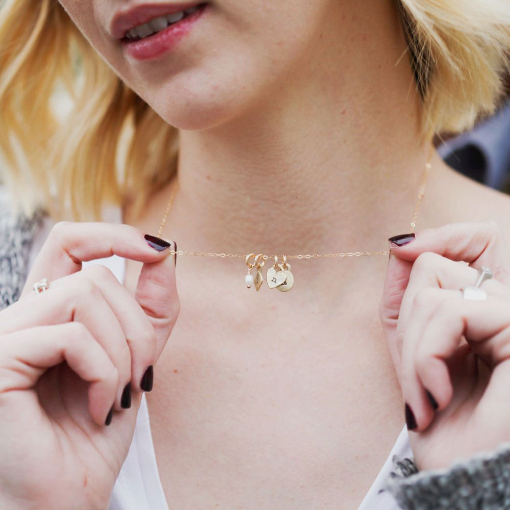 Personalized Birthstone Bloom Jumble Necklace (Sterling Silver)