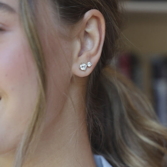 These sweet stud earrings are made of 14k yellow gold and are set with a total of 1.0ct of lab-grown diamonds.